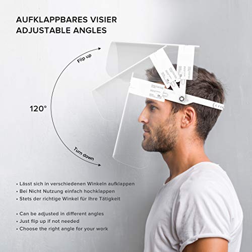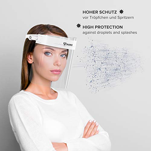 HARD Visiera Protettiva Apribile 10 x Supporto con 20 x Visiere intercambiabile, chiusura Cap regolabile, Anti-nebbia, Certificato medico, Face Shield - Bianco/Bianco
