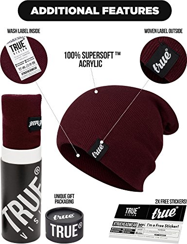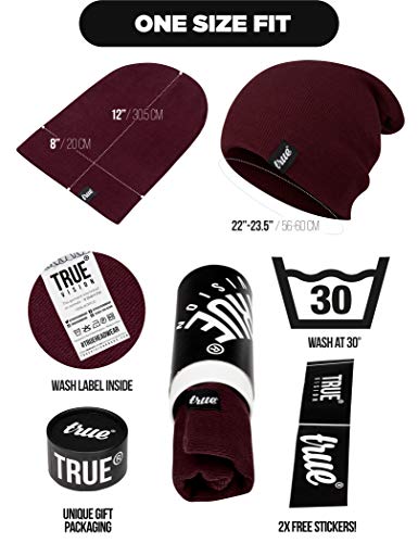 TRUE VISION Berretto Borgogna Invernale da Uomo - da Indossare normalmente Oppure ripiegato - Morbido e Confortevole, Taglia Unica - in Acrilico Lavorato a Maglia. Unisex - per Uomo e Donna