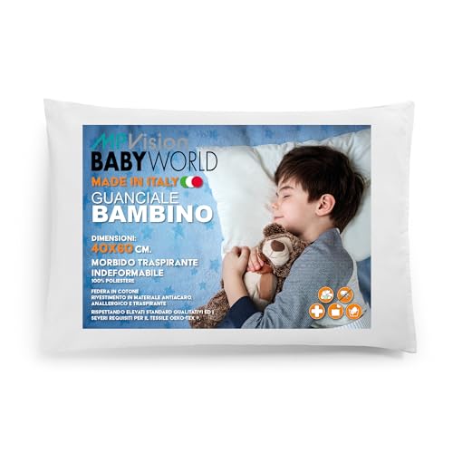 MP VISION Cuscino Lettino Bambino 40x60 altezza 4 cm - Antiacaro - Traspirante, Anallergico - Made in Italy by BabyWorld