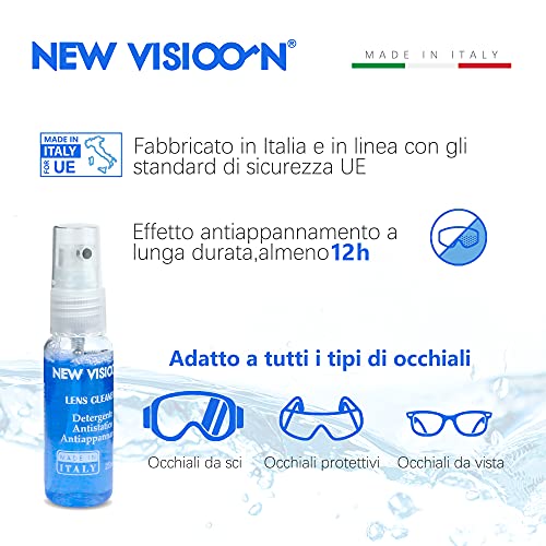 NEW VISION Kit 3in1,Spray Anti Appannamento con Panno Microfibre,Anti Fog Occhiali da Vista, Liquido Antiappannante,Detergente Antistatico Pulizia Maschera Casco, Occhiali da Sci - 25mL