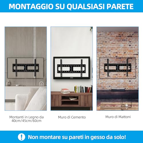 【Facile da Installare】 Questo supporto a muro per TV è dotato di istruzioni facili da seguire, con un semplice processo di installazione in 3 passaggi. Si adatta perfettamente a montanti in legno da 40-45-60 cm o a pareti in cemento/mattoni (tasselli inclusi). Si prega di non installarlo solo su cartongesso.