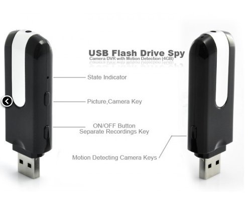 Si presenta come una chiavetta USB, funziona come un flash drive ma contiene una telecamera nascosta e microfono.