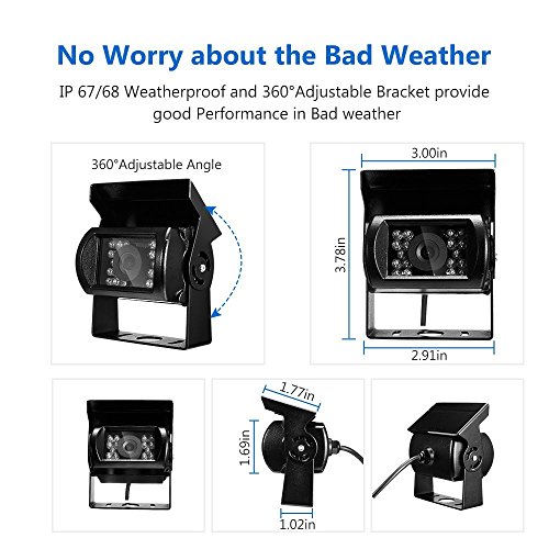 Ampia gamma di applicazioni: tensione di funzionamento: 9 V/36 V è perfetta per il traino di camper, caravan, veicoli agricoli, auto, camion, furgoni, bus. Design speciale per la fotocamera anteriore del camion per la visione anteriore di punti ciechi.