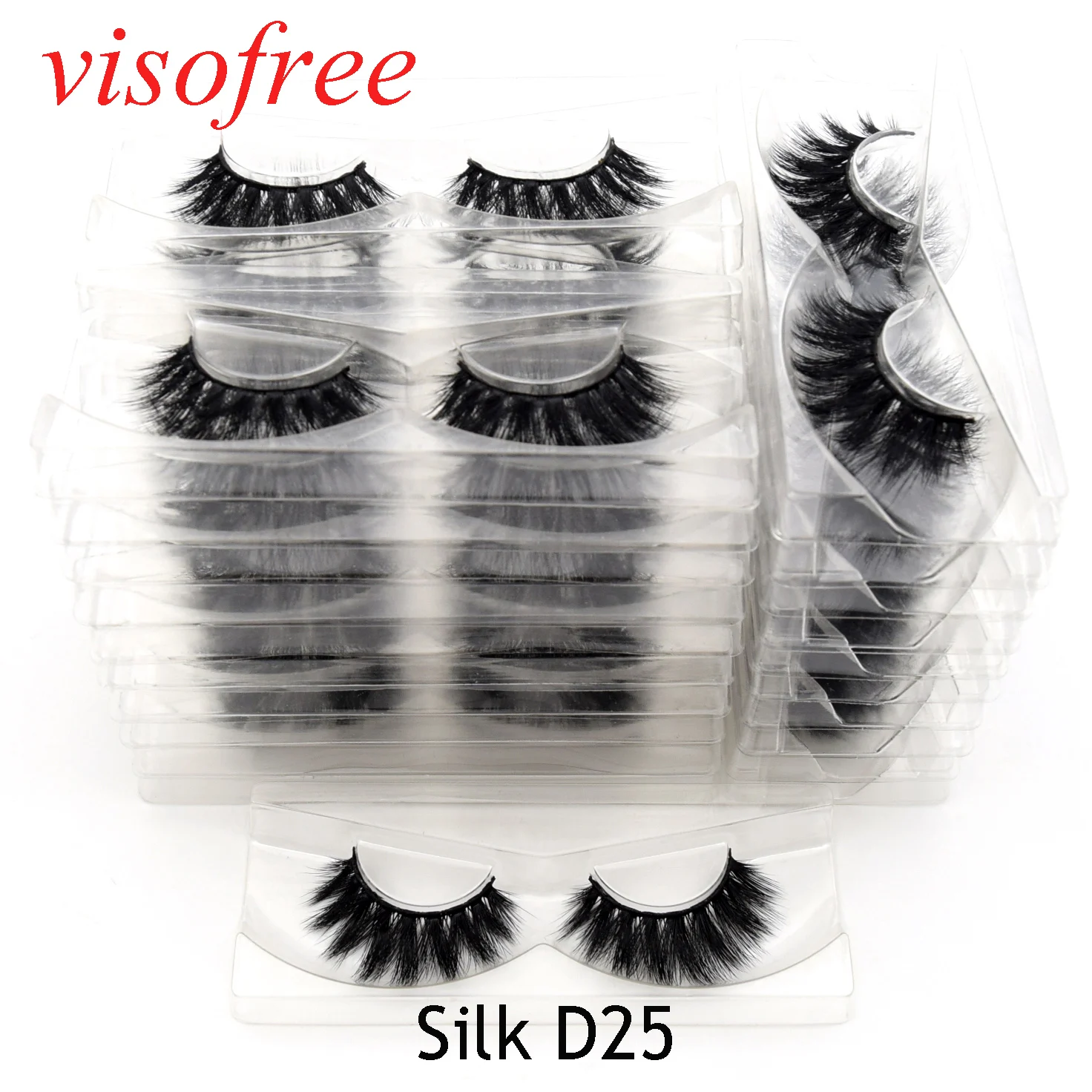 Visofree 30 Pairs/lot 3D Faux Silk Lashes Softly False Eyelashes 100% Handmade High quality Reusable Eyelashes Silk-D25