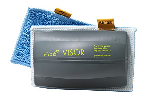 Pica Visor Quattro - Set composto da 4 pennarelli a lunga durata per lavagna bianca (colori: nero/rosso/blu/verde), 2 supporti per i pennarelli e un cancellino professionale con 2 panni in microfibra