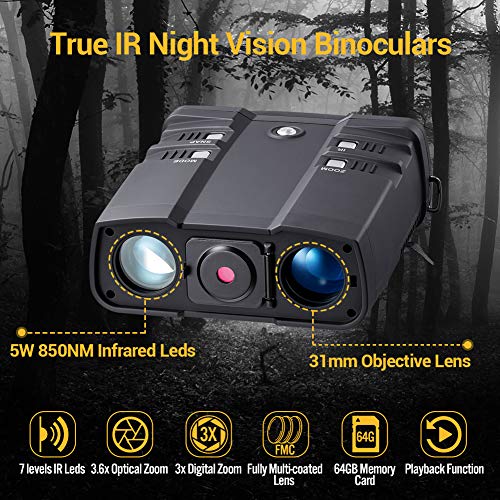 Visore notturno 10,8X, distanza di visione fino a 700 m al buio, visione notturna digitale con videocamere 1080P, visione notturna, binocolo con schermo grande da 4 pollici e scheda di memoria 64 G