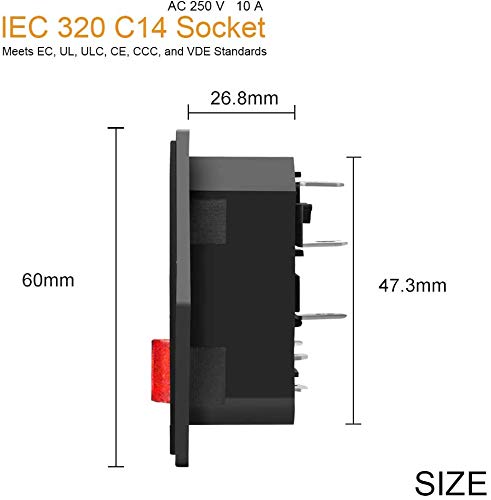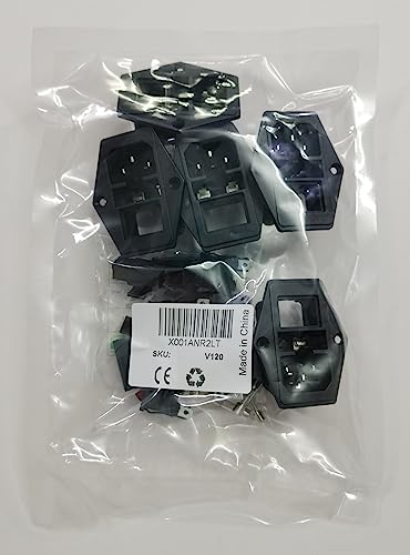 VISSQH 5 pezzi IEC 320 C14 adattatore per montaggio,dispositivi a freddo Spina, 3 Pin Modulo di ingresso Connettore Fusibile Presa di corrente maschio con interruttore CA 250 V 10 A Luce rossa