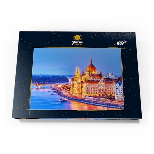 Vista Notturna Dell'edificio Del Parlamento E Della Valle Del Danubio A Budapest, Ungheria - Premium 1000 Pezzi Puzzle - MyPuzzle Collezione speciale di Puzzle Galaxy