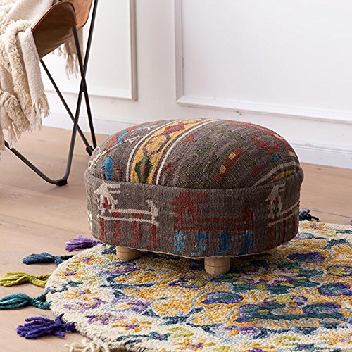 Visual taste Tessuto handmade della moquette sgabello basso stile bohemien sgabello cambio scarpa modello geometrico sgabello creativo necessario assemblare-F 45x35x25cm(18x14x10inch)