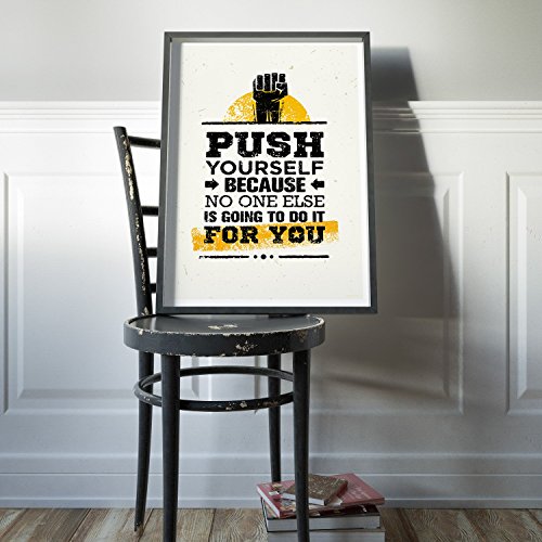 Visual Vitamins Poster Motivazionale VFI001 Push Yourself Sport Bodybuilding Fitness Posters Quotes Qualità Eccellente Carta Fotografica Lucida Quota Poster Motivazione 61 x 42 cm