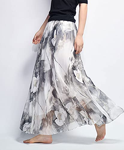 Visyaa Maxi Gonna Estiva Donna Gonna Lunga Chiffon Gonna Boho Gonna Plissettata in Vita Elasticizzata Gonne Elegantemente Stampate