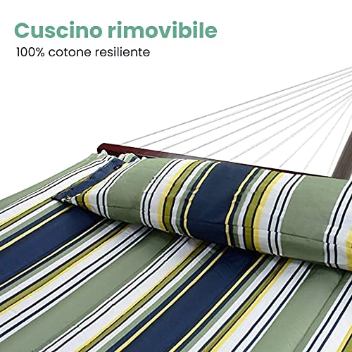 CONDIVIDI MOMENTI INSIEME - Questa amaca (Verde Scuro/Blu Scuro) per due persone offre tanto spazio. La doppia amaca con supporto in metallo sorregge fino a 200 kg, perfetta per rilassarsi insieme. Ideale a bordo piscina o in terrazza per stare vicini ai propri cari