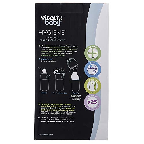 Vital Baby Hygiene Sistema di smaltimento pannolini, senza ricariche, inodore, può contenere fino a 25 pannolini, adatto per pannolini monouso e riutilizzabili, colore grigio