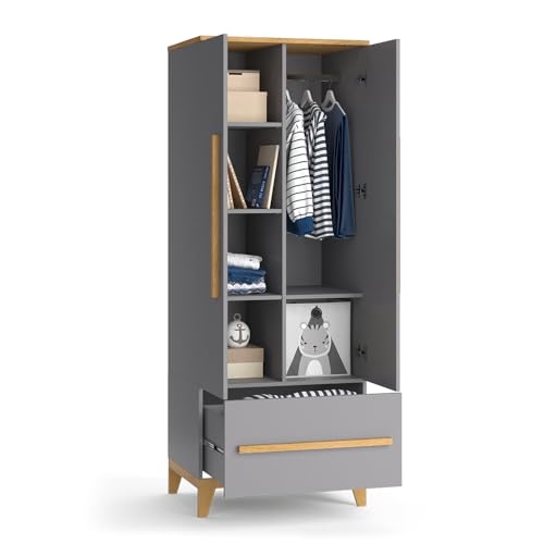 VitaliSpa Guardaroba per bambini Malia, Grigio/Rovere, 70 x 187 cm