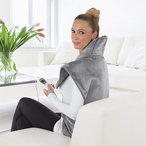 VITALmaxx coperta riscaldante per schiena e spalle | Calore accogliente per le spalle e tutta la schiena | Vestibilità ottimale | Microfibra max. 100W [grigio]