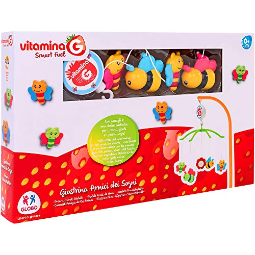 Vitamina G Amici Colorata giostrina con sonagli e Una Dolce Melodia Giochi e i Primi Sogni. con Pratico Gancio per posizionarla sul Lettino o sul Passeggino, Multicolore, GLO801