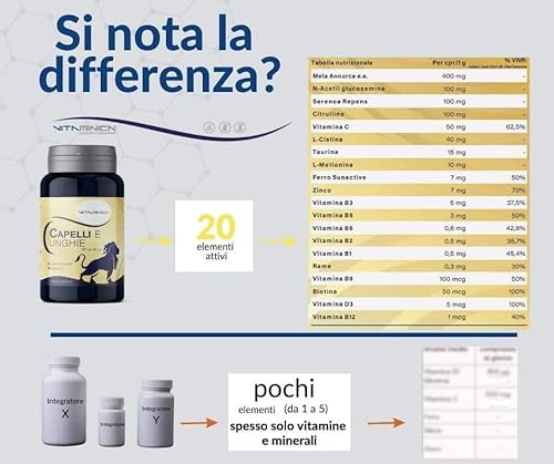 Approvato dal Ministero della Salute, SENZA Glutine e SENZA Lattosio. Ingredienti di Qualità e prodotto interamente in Italia. Garanzia del miglior compromesso tra dosaggio3 ingredienti, risultati che otterrete e tollerabilità anche nel lungo periodo. Garanzia sui quantitativi reali degli ingredienti dichiarati in etichetta