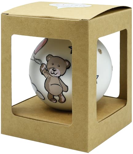 Vitbis Sfera in vetro soffiato - Sfera di vetro dipinta a mano - Decorazione per albero di Natale pasquale - Graziosa decorazione per la camera dei bambini - festa di nascita - orsacchiotto - 10 cm