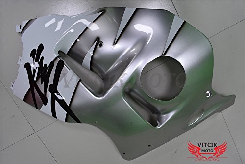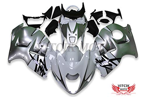 VITCIK (Kit Carenatura Compatibile con GSXR1300 GSX-R 1300 GSXR 1300 Hayabusa 1997-2007) stampaggio a iniezione per moto plastica in ABS telaio(Bianco & Argento) A091