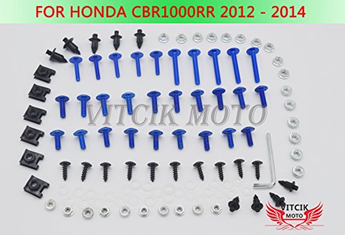 VITCIK Kit completo di carenatura viti bulloni per CBR 1000 RR 2012 2013 2014 CBR 1000 RR 12 13 14 Serraggio per moto, clip in alluminio CNC (Blu & Argento)