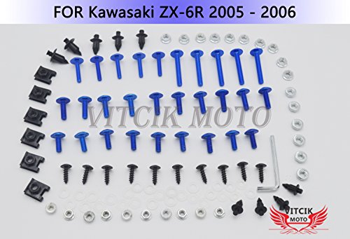VITCIK Kit completo di carenatura viti bulloni per ZX6R ZX-6R Ninja 636 2005 2006 05 06 Serraggio per moto, clip in alluminio CNC (Blu & Argento)