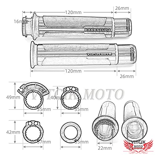 Contenuto della confezione: 2Pz x manopole del manubrio della moto (sinistra e destra) + 2Pz x estremità della barra della moto (sinistra e destra) + 3 pezzi di anello di accelerazione. (Dimensioni diverse).