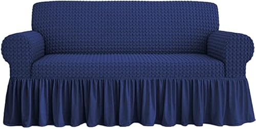 Viterbo Biancheria Copridivano Waffel Riccio con Voilant Elasticizzato In Tessuto Bielastico (3 Posti (382), Blu)