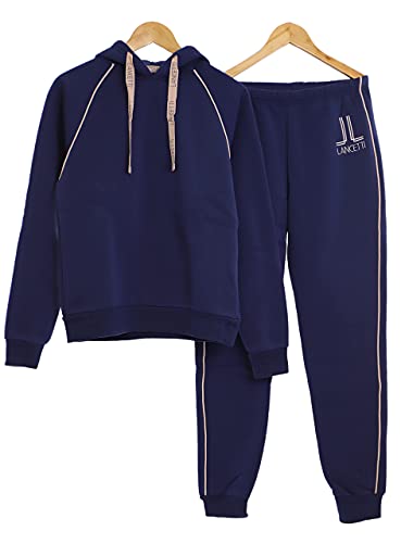 Viterbo Biancheria Tuta da Casa Donna Felpata Lancetti LWW0008 S - M - L - XL (6473) (Blu, M)