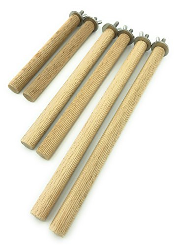 Vitezza 6er Set di miscelazione posatoi 15 cm/20 cm/25 cm in faggio Rundholz con venature 18 mm per cocorite kg, Nymphe sittiche e Co. - Incluso Materiale di Fissaggio in Acciaio Inox