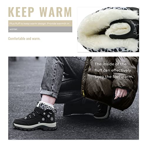 VITIKE Stivali Donna Invernali Stivaletti da Neve Foderato Cald Scarponi Antiscivolo Trekking Scarpe,Nero,37 EU