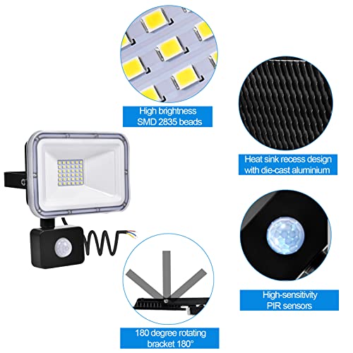 Viugreum 30W Faretto con Sensore di Movimento, 3000LM Faro LED da Esterno con Sensore, 6500K Bianco Freddo IP67 Impermeabile Faretti LED Illuminazione per Giardino, Corridoio, Terrazza, Patio, Garage