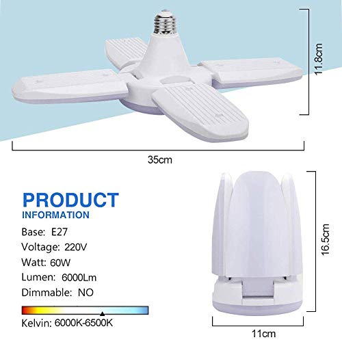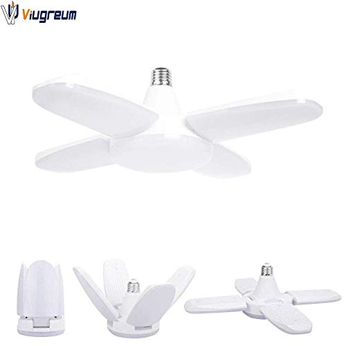 Viugreum Lampada da Garage a LED, E27 Lampada Garage LED, 60W E27 6500K 6000Lm, Lampada da Negozio Deformabile Con 4 Pannelli Regolabili, Plafoniera a LED per Garage, Magazzino, Officina, Cantina