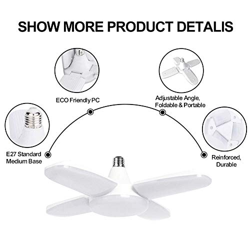 ★★★ 【Design super luminoso e regolabile】 La luce LED per garage fornisce un flusso luminoso di 4800 lumen in bianco luce diurna a 6500K. C'è una grande lampada circolare a LED e quattro pannelli luminosi a LED con design regolabile grandangolare verso l'alto, per coprire un'area più ampia.
