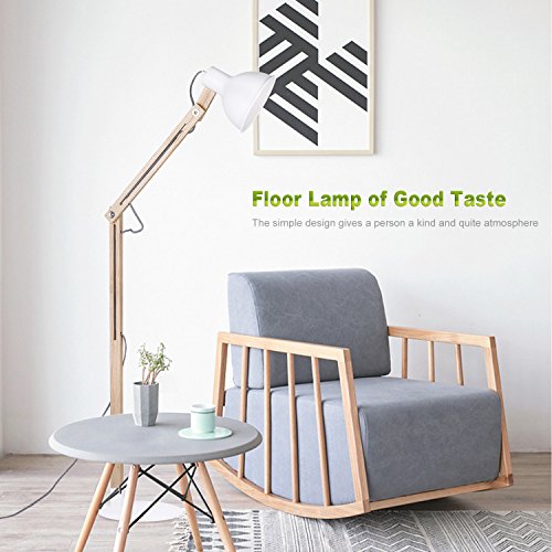 Viugreum- Lampada da Terra Alta Altezza 1.50m Cavo 3.5m STABILE NON BALLERINA Lampada Piantana LED Regolabile Design Scandinavo Frassino Chiaro (Bianca)