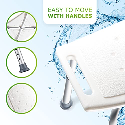 Vivamore Sgabello da Doccia Antiscivolo - Sgabello da Bagno - Sedia da Doccia Regolabile in Altezza - Max. 150KG - Bianco
