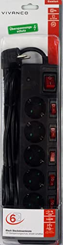 Vivanco 37326 Interno 7presa(e) AC 1.8m Nero prolunghe e multiple - Multiprese (Interno, 1,8 m, 7 presa(e) AC, Tipo F, Surtension)