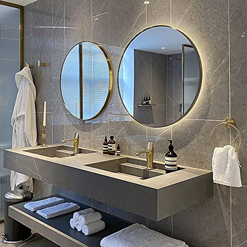 Vivarry Specchio Da Bagno Rotondo A LED, (Oro/Nero) Specchio Da Trucco Con Illuminazione LED, 50cm / 60cm / 70cm / 80cm, Specchio Da Parete, Luce Bianca/Luce Calda