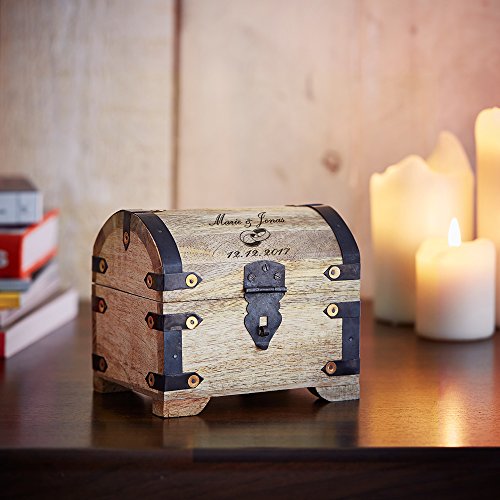 Casa Vivente Scrigno in Legno Chiaro con Incisione Personalizzata con Nomi e Data, Motivo FEDI Nuziali, Forziere Vintage, Idea Regalo Nozze