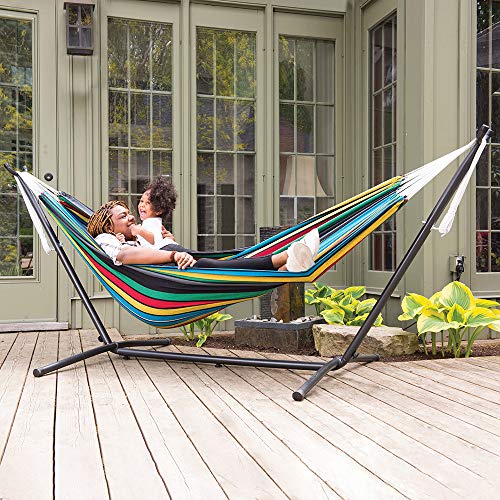 Vivere combo, la doppia amaca con supporto e borsa per il trasporto è la nostra scelta migliore per combo. La doppia amaca è strettamente tessuta con filo di cotone di alta qualità che si traduce in un tessuto pesante e resistente.