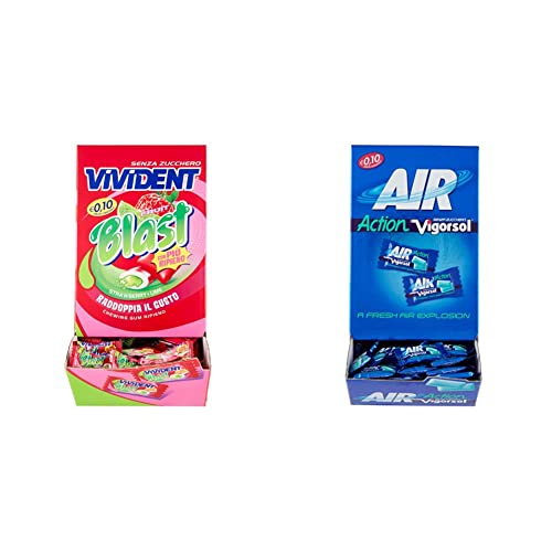 Vivident Fruit Blast, Chewing Gum Senza Zucchero, Gusto Fragola e Lime, Confezione da 200 Gomme da Masticare & Vigorsol Air Action Gomme da Masticare Senza Zucchero, Chewing Gum Gusto Menta