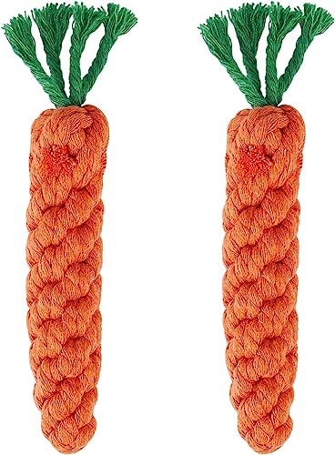 Vivifying Giocattoli da masticare per cuccioli, carota, confezione da 2 pezzi di corda intrecciata giocattolo per cani di piccola taglia pulizia dei denti
