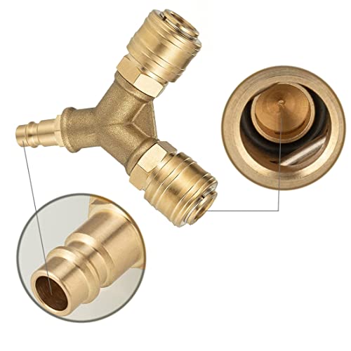 VIVIIHOO Raccordo Aria compressa 2 Posizioni Interruttore Aria compressa in Ottone 1/4'' Distributore Aria compressa a Y 2 raccordi Distributore Aria compressa Distributore Maschio