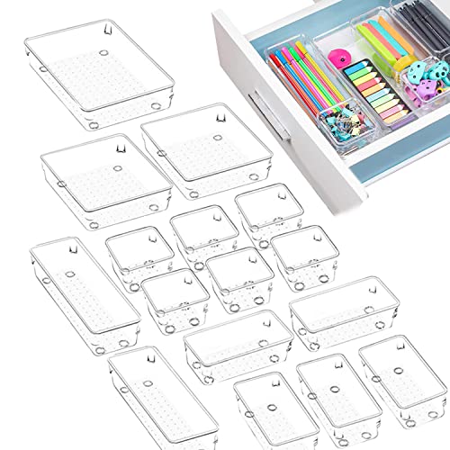 ViViKaya 16 Pezzi Organizer Cassetti, Divisori per Cassetti in Plastica con 100 Pezzi Gommini, Organizer per Scrivania Cassetti, Cucina, Bagno, Trucco, Armadio