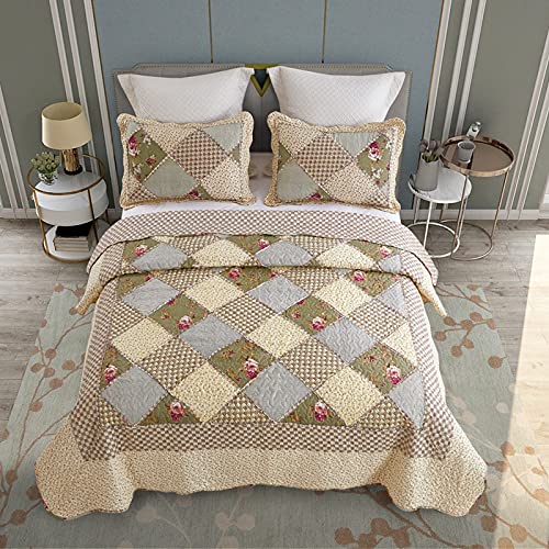 3 PCS SET - 1 x Copriletto (220 x 240 cm/ 86" x 94"), 2 x Federe (50 x 70 cm/ 19" x 27"). Si prega di notare che non c'è un inserto per cuscino. PATCHWORK PATTERNS - Design cucito a mano, set copriletto
