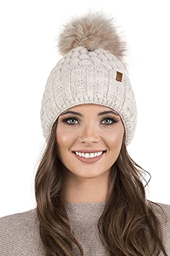 Vivisence Cappello E Sciarpa Set Invernale da Donna 7015Kmpl, Beige,Taglia Unica
