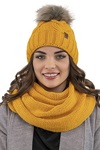 Vivisence Set Invernale da Donna Cappello E Scaldacollo 7014Kmpl, Marrone,Taglia Unica