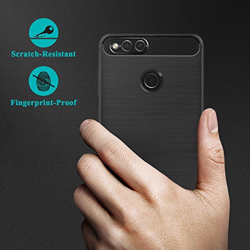 ViViSun Cover Huawei Honor 7X, Custodia [Rugged Armor] TPU Silicone Custodia Cover Struttura in Fibra di Carbonio Massima Protezione da Cadute e Urti per Honor 7X [Nero]
