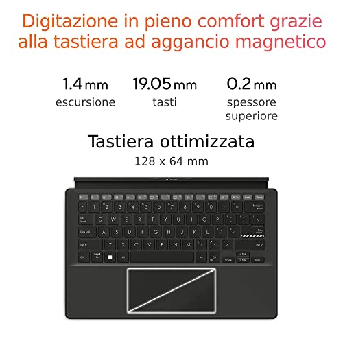 Tastiera full-size ad aggancio magnetico con ampio touchpad, nuovo stilo ASUS Pen 2.0 incluso in confezione con 4096 livelli di pressione e 4 punte intercambiabili per la penna, funzioni Bluetooth one-click tramite pulsante di scelta rapida