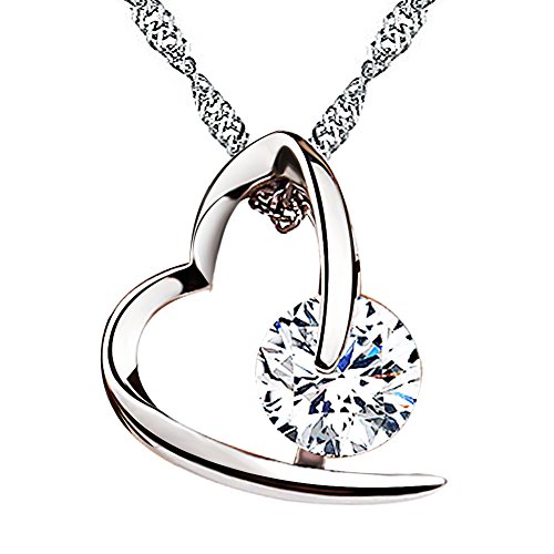 Viyino collana in argento Sterling 925 con zirconia cubica a forma di cuore, ciondolo con catena da 45 cm