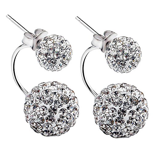Viyino - Orecchini da donna in argento Sterling 925, con doppia sfera decorata con cristalli